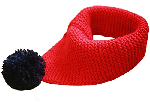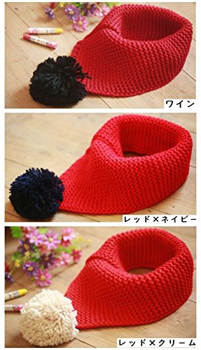 Plus Nao(プラスナオ) 子供用 スヌード ネックウォーマー ぽんぽん付き ポンポン付き ぼんぼん ボンボン 防寒 寒さ対策 暖かい あったかい - レッド×ネイビー