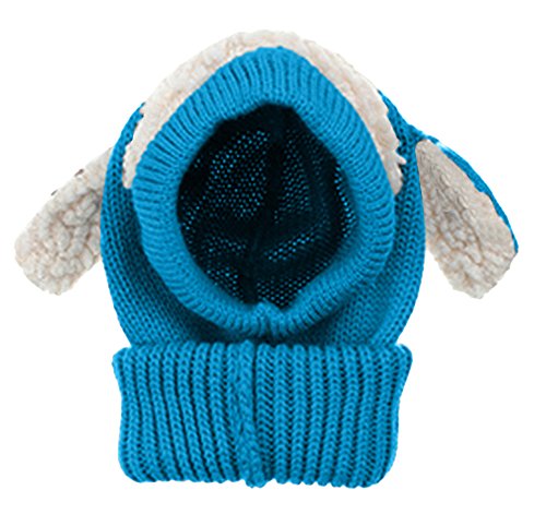 Plus Nao(プラスナオ) 子供用アニマルフードのニット帽耳付き ネックウォーマー一体型 ヒツジ耳 ニットキャップ スヌード キッズ ベビーか F ブルー