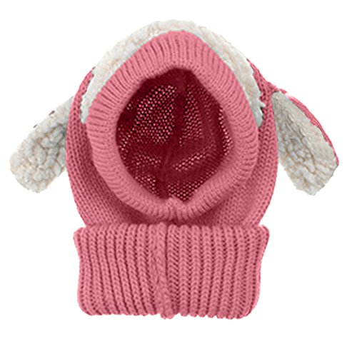 Plus Nao(プラスナオ) 子供用アニマルフードのニット帽耳付き ネックウォーマー一体型 ヒツジ耳 ニットキャップ スヌード キッズ ベビーか F ピンク