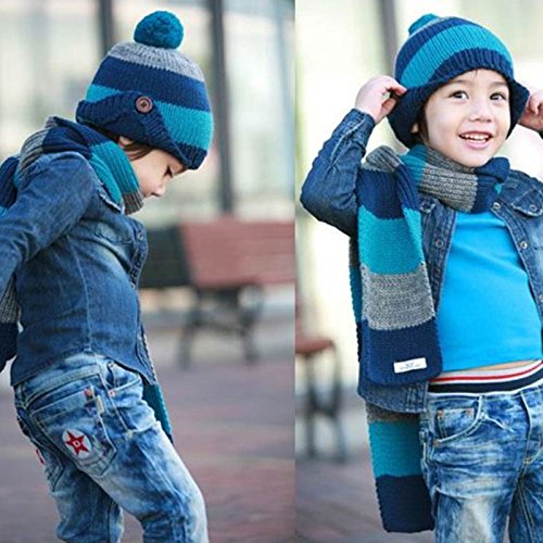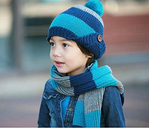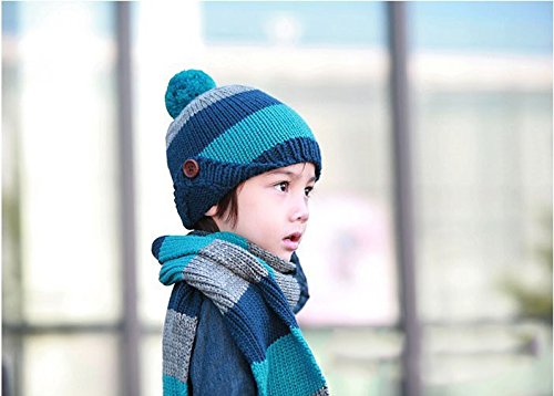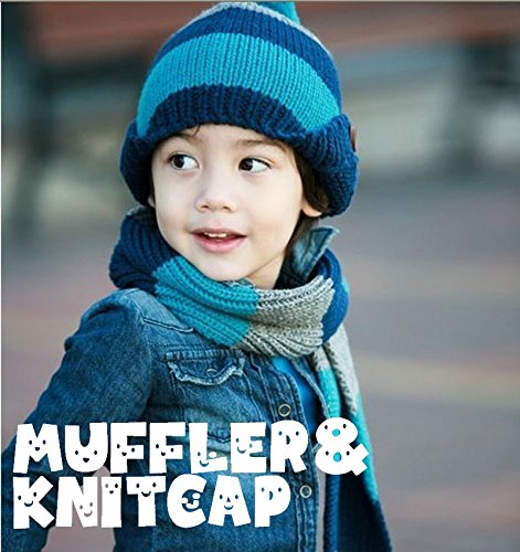 子供用 ニット帽 ボンボン付き ボーダー ボタン付き マフラー付き 2点セット セットアップ ニットキャップ キッズ ジュニア 男の子 女の子 冬帽子
