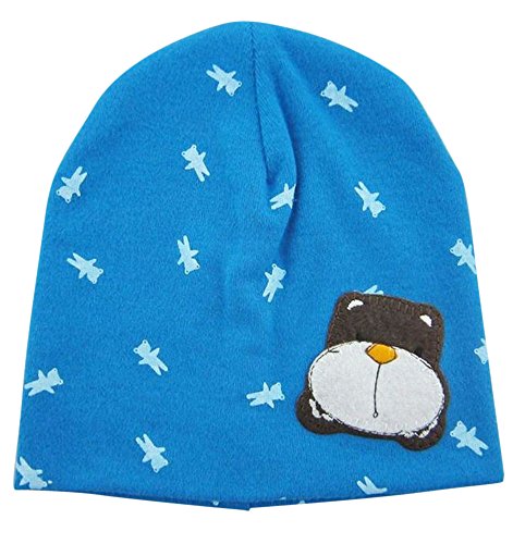 Plus Nao(プラスナオ) 子供用 帽子 ニット帽 ビーニー くまさん模様 ニットキャップ アップリケ付き 赤ちゃん ベビー キッズ - スカイブルー