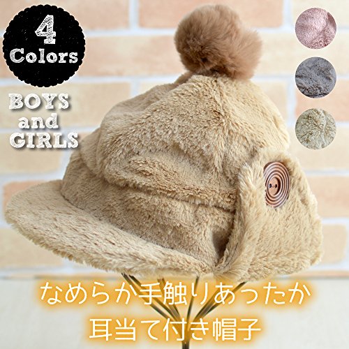 なめらか手触りポンポン付裏側フリース耳あて帽子 キッズ キャップ 女の子 男の子 ジュニアサイズ キャップ 子供用 お洒落 防寒 オシャレ キッズ帽子 子供用帽子 耳あて付キャップ帽