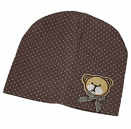Plus Nao(プラスナオ) 子供用 帽子 ニット帽 ビーニー 水玉模様模様 ニットキャップ アップリケ付き 赤ちゃん ベビー キッズ - ブラウン