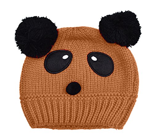 Plus Nao(プラスナオ) 子供用 帽子 ニット帽 ビーニー ニットキャップ パンダデザイン ボンボン付き 赤ちゃん ベビー キッズ 男の子 女の子 - ブラウン