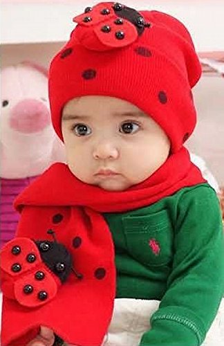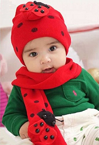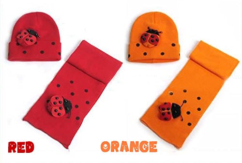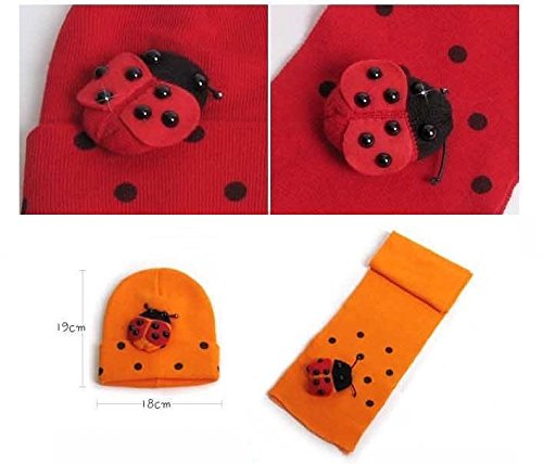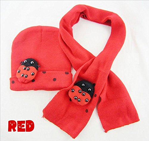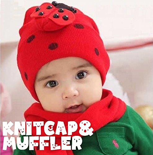 てんとう虫のデザインが可愛いニット帽とマフラーのセット(サイズについて)幅18cm 高さ19cm 8ヵ月から4歳ぐらいまでのお子様用です