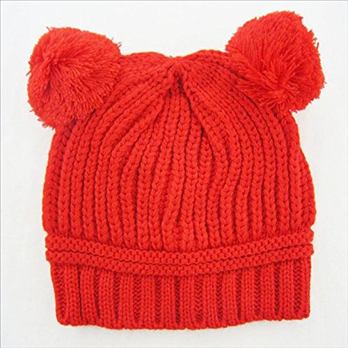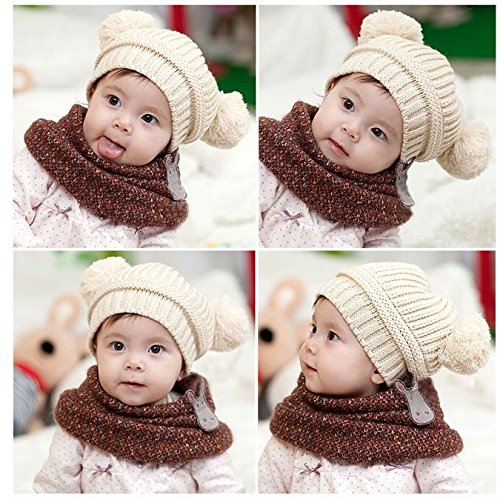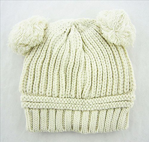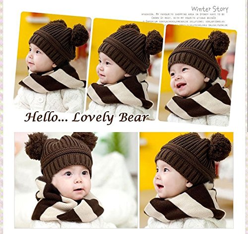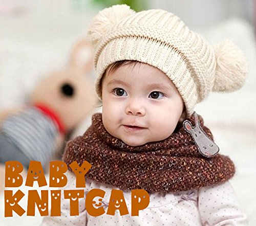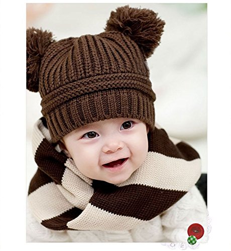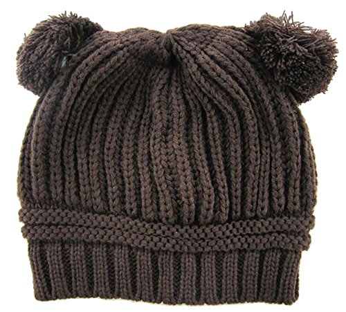Plus Nao(プラスナオ) 子供用 帽子 ニット帽 ボンボン付き リブニット 手編み風 ニットキャップ 赤ちゃん ベビー シンプル 無地 冬帽子 - ブラウン