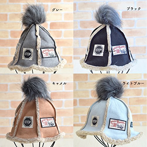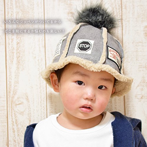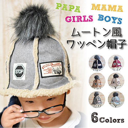 Plus Nao(プラスナオ) 親子コーデができるあったかムートン風ワッペン帽子 キッズ 可愛い パパ ママ 子供 ジュニア 男の子 女の子 ガールズ 大人用 ブラック