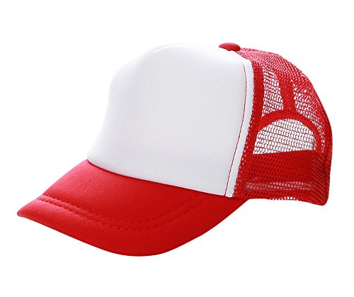 Plus Nao(プラスナオ) 帽子 キャップ メッシュキャップ CAP 野球帽 無地 シンプル 子供 キッズ ジュニア 男の子 男児 女の子 女児 日焼け防 53-56cm レッド×ホワイト