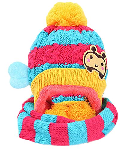 Plus Nao(プラスナオ) スヌード付きニット帽 キッズ ベビー あったかマフラー メビウス型スヌード あったか裏起毛帽子 耳までかくれるボン - ホットピンク