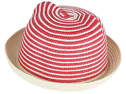 Plus Nao(プラスナオ) 麦わら帽子 ベビー 子供用 キッズ ストローハット ぼうし ハット バイカラー 女の子 男の子 可愛い リゾート ビーチ - レッド