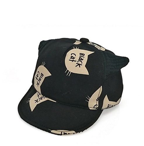 Plus Nao(プラスナオ) 帽子 キャップ ぼうし ハット ベビー キッズ 子供用 シンプル 猫耳 つば広 男の子 女の子 日よけ uv紫外線対策 可愛 - ブラック