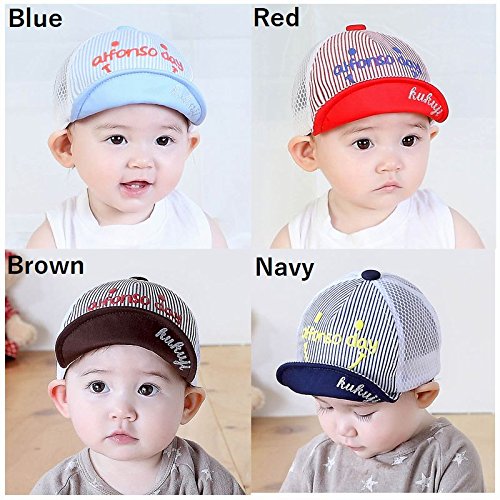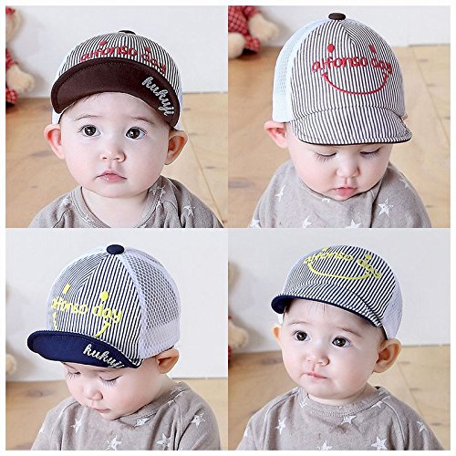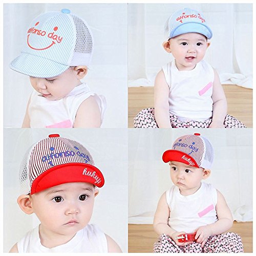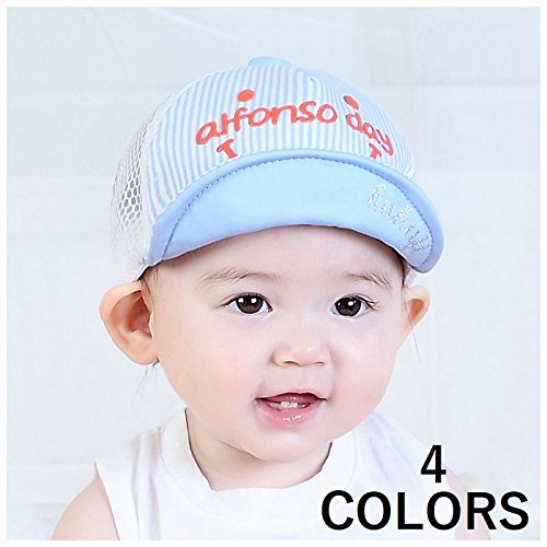 Plus Nao(プラスナオ) 帽子 キャップ ハット ベビー キッズ 子供用 メッシュ ストライプ柄 ボーダー柄 男の子 女の子 日よけ 紫外線対策 - ブルー