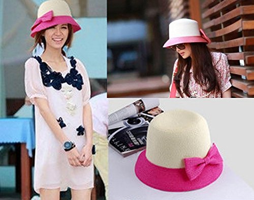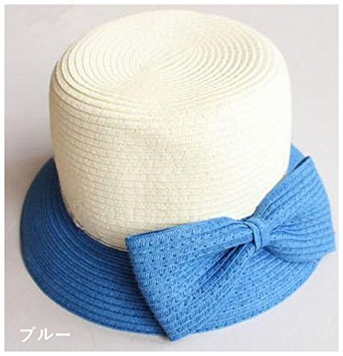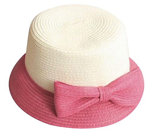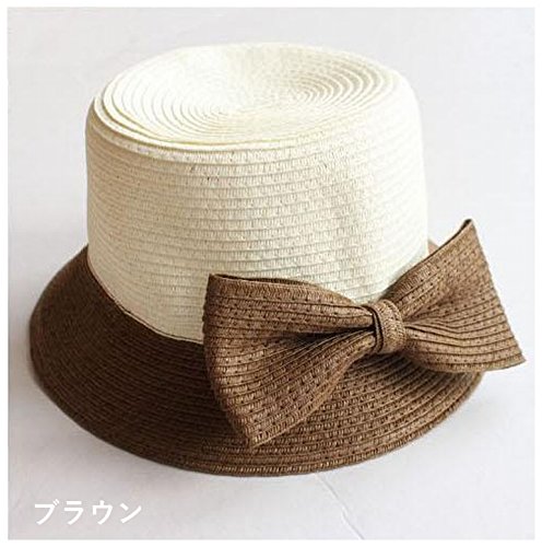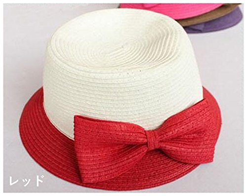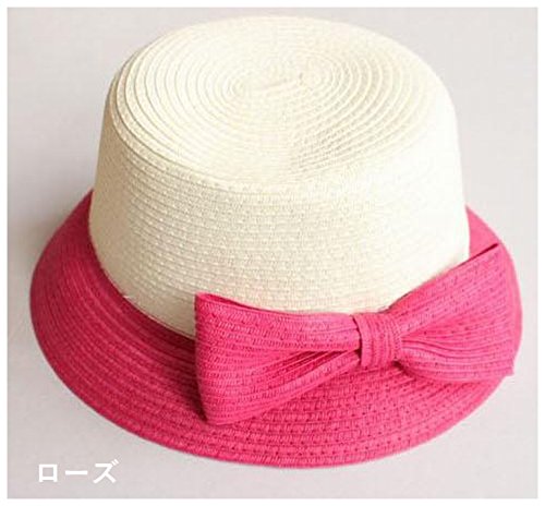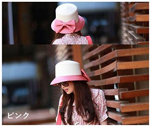 Plus Nao(プラスナオ) 麦わら帽子 カンカン帽 つば広帽 つば広ハット レディース 子供用帽子 大人用 バイカラー リボン付き 紫外線対策 親 大人用 ピンク