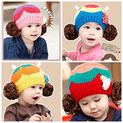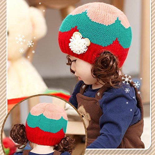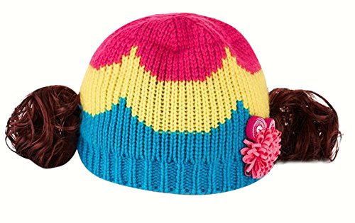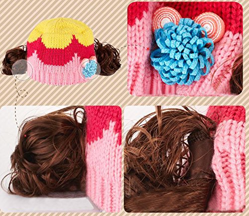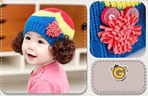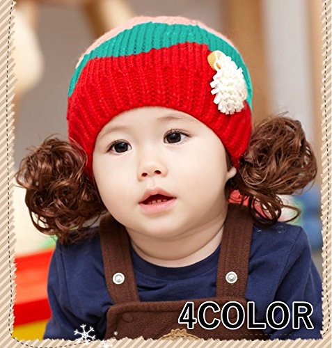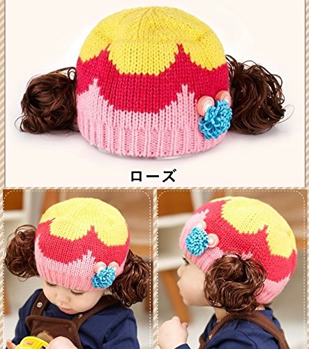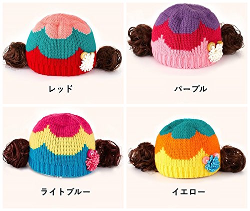 ウィッグ付きの可愛いニット帽登場♪ コサージュとカラフルな色使いも女の子らしいデザインです。(サイズについて)頭囲:46-52cm 適応年齢:約6ヶ月~3才位まで ※メーカー側で採寸しております。多少の誤差がございますのでご了承ください※(素材について)アクリル ポリエステル