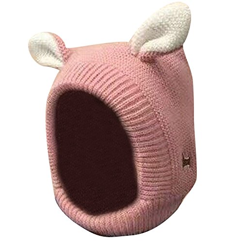 Plus Nao(プラスナオ) 耳付きニット帽 子供用アニマル帽子 キッズ帽子 ベビー帽子 裏地付き ちょこっとスヌード ワンちゃん耳付き あったか - ライトピンク