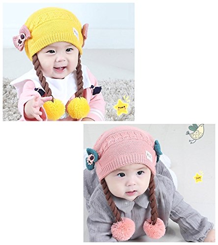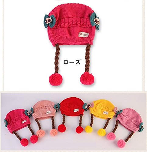 ニット帽 ニットキャップ ベビー帽子 ぼうし 赤ちゃん用 子供用 つけ毛付き ウィッグ付き 三つ編み付き おさげ付き ポンポン リボン 女の子 女児 BABY 可愛い ガーリー おしゃれ おもしろい 冬 防寒対策