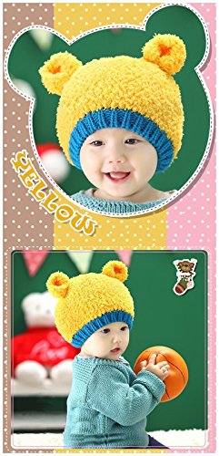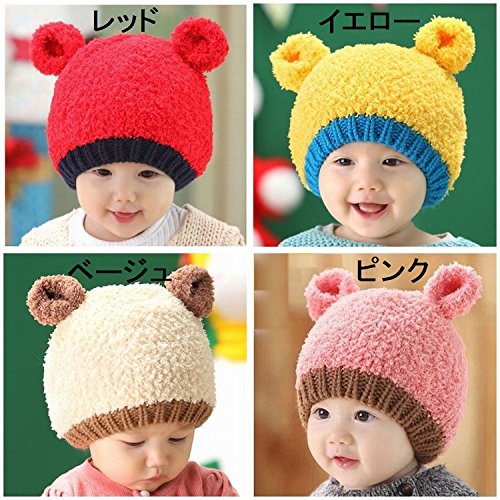 Plus Nao(プラスナオ) 帽子 ニットキャップ 子供 赤ちゃん ベビー カラバリ豊富 可愛い キュート 贈り物 プレゼント 耳付き カラフル 暖か - イエロー