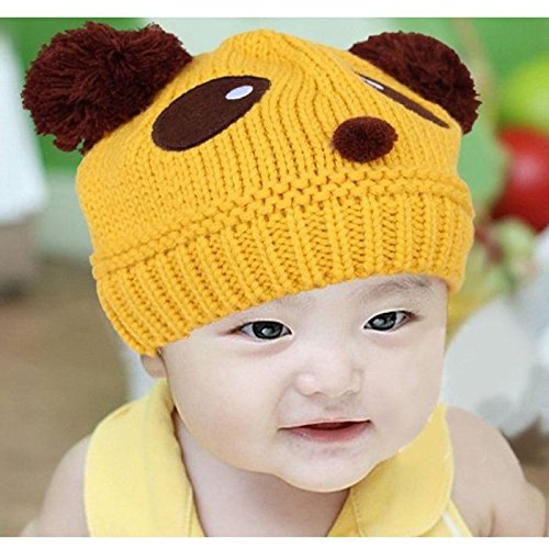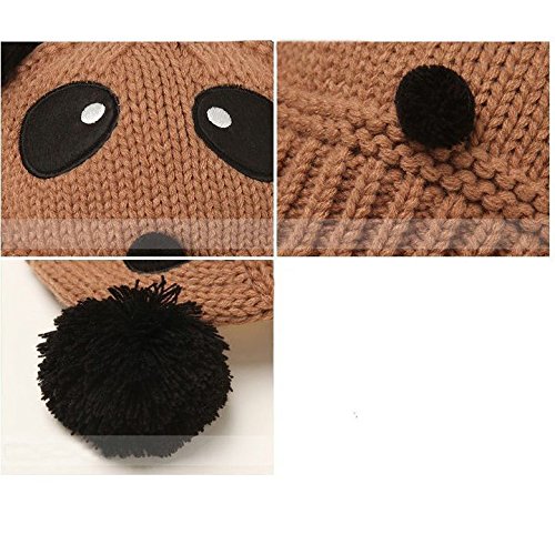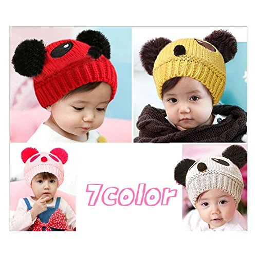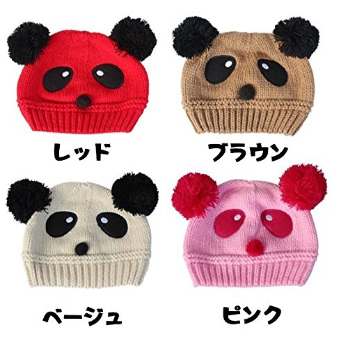 Plus Nao(プラスナオ) 子供用 帽子 ニット帽 ビーニー ニットキャップ パンダデザイン ボンボン付き 赤ちゃん ベビー キッズ 男の子 女の子 - ピンク
