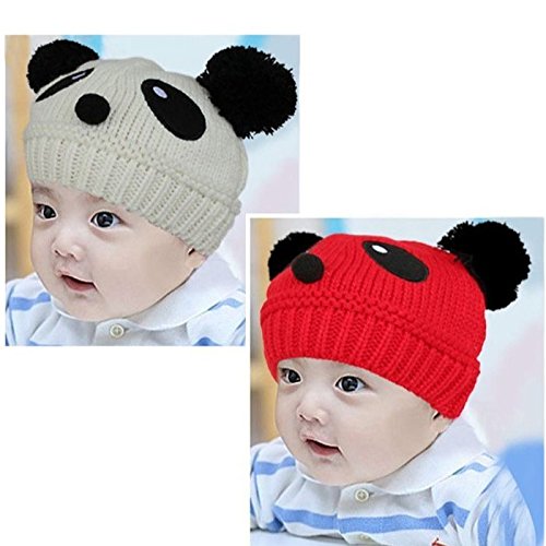子供用 帽子 ニット帽 ビーニー ニットキャップ パンダデザイン ボンボン付き 赤ちゃん ベビー キッズ 男の子 女の子 冬帽子 バイカラー