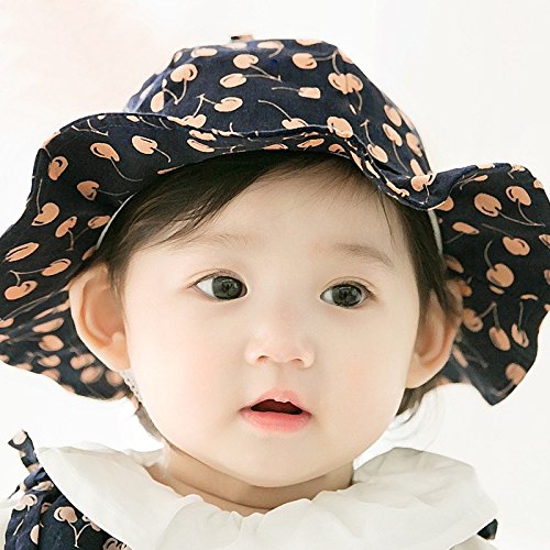 Plus Nao(プラスナオ) とんがり帽子 チューリップハット ベビー帽子 ベビーキャップ ハット ぼうし 赤ちゃん BABY 女の子 女児 フルーツ柄 - ネイビー