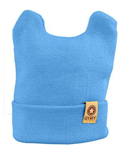Plus Nao(プラスナオ) 子供用 ベビー用 ニット帽 ニットキャップ 耳付き シンプル 無地 タグデザイン ベビー キッズ 女の子 男の子 冬帽子 - ブルー