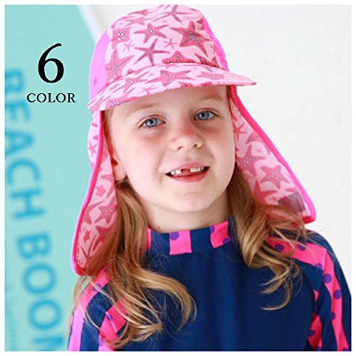 Plus Nao(プラスナオ) 帽子 ハット 日よけ 日よけたれ付き キッズ 子供用帽子 可愛い プール スイミング 紫外線カット 首元防止 水遊び カ S ピンク【スター】