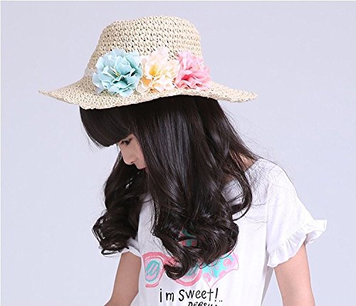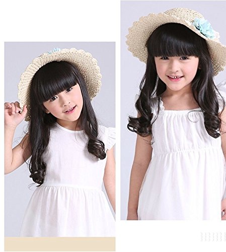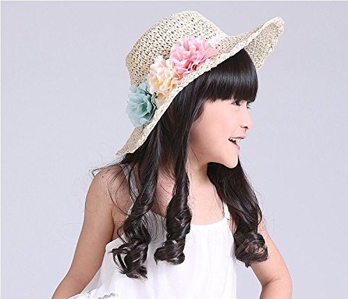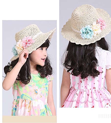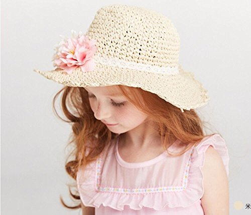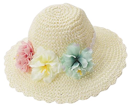 Plus Nao(プラスナオ) 帽子 ハット ベビー キッズ 女の子 麦わら風帽子 ペーパーハット 花 日焼け防止 つば広ハット カジュアル キュート - ミルクホワイト