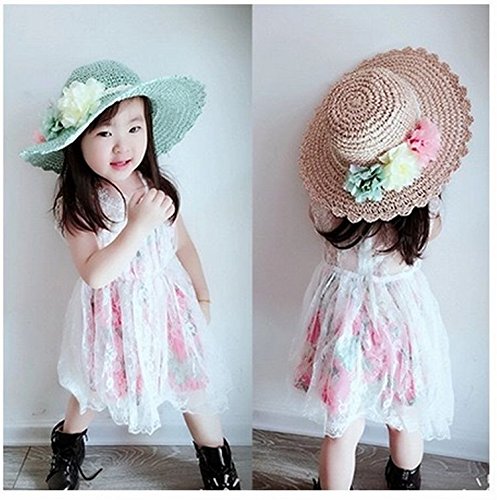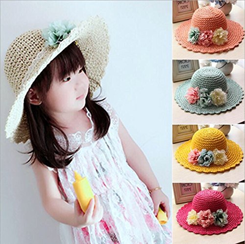 帽子 ハット ベビー キッズ 女の子 麦わら風帽子 ペーパーハット 花 日焼け防止 つば広ハット カジュアル キュート プチプラ フラワー