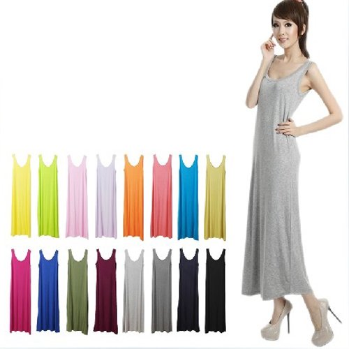 ノースリーブマキシワンピース・Aライン・シンプル無地