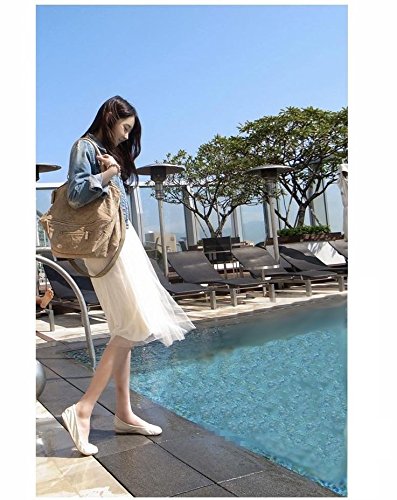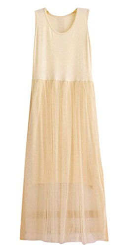 Plus Nao(プラスナオ) ワンピース ノースリーブ 膝丈 ラウンドネック ミディアム丈 ミディ丈 レディース チュールスカート フレアスカート - ベージュ