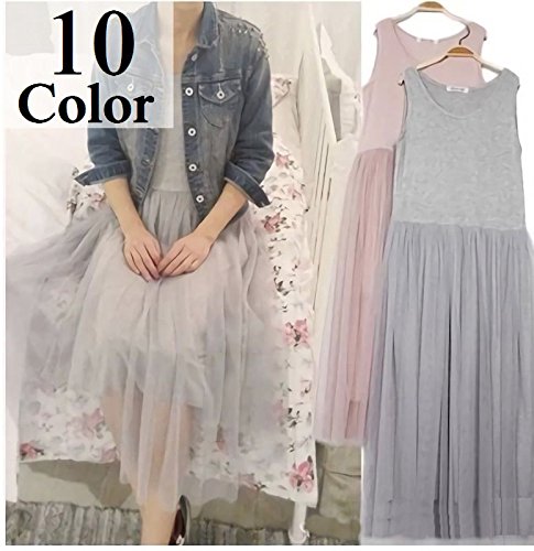 ふんわりと広がるチュールスカートがとてもキュートなレディース用ノースリーブワンピースです。(サイズについて)(単位:約cm) 着丈:100 胸囲:80~110 ウエスト:76~100 ※メーカー側で採寸しております。多少の誤差がございますのでご了承ください※(素材について)モダール