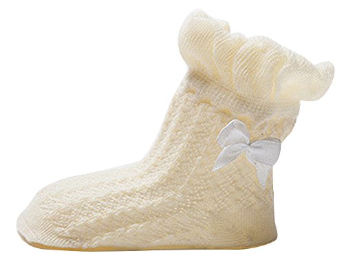 Plus Nao(プラスナオ) 靴下 ベビー 赤ちゃん キッズ 女の子 男の子 メッシュ リボン付き 可愛い シンプル 無地 コットン M イエロー