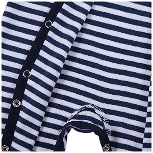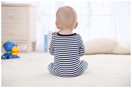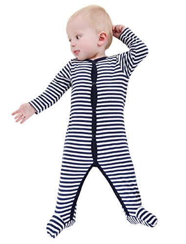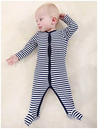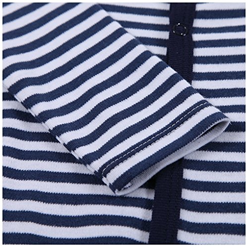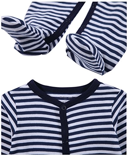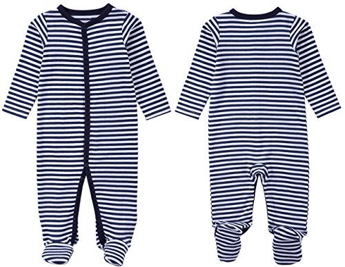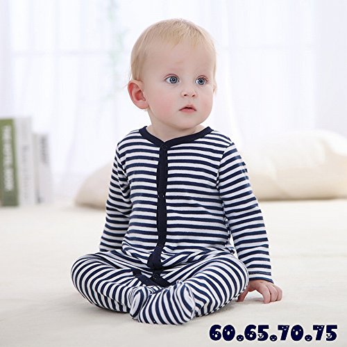 Plus Nao(プラスナオ) ベビー服 ロンパース 足つき 長袖 肌着 秋冬 ボーダー コットン100% 男の子 女の子 赤ちゃん ベビー 60 65 70 75 ネイビー 75