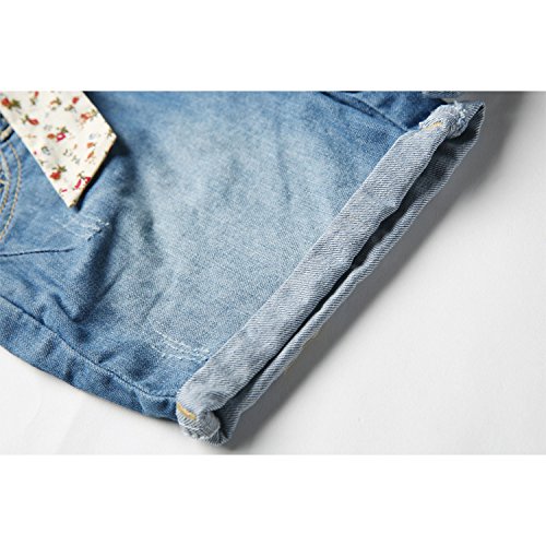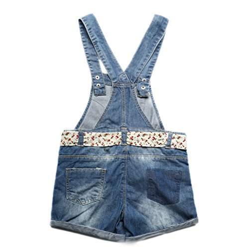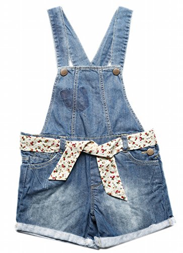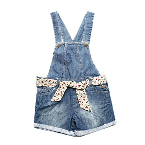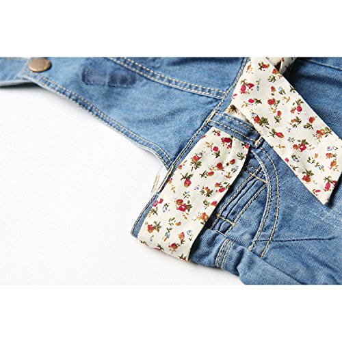 Plus Nao(プラスナオ) サロペット オーバーオール ショートパンツ デニム ウエスト花柄リボン オールインワン ボトムス シンプル 子供 キッ ライトブルー 120cm