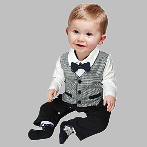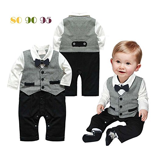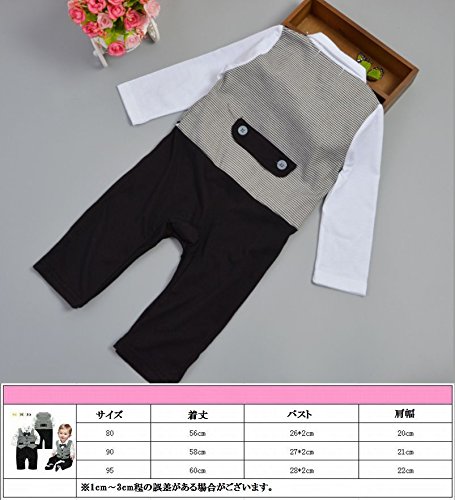 カバーオール ロンパース フォーマル ベビーウエア 長袖 ベビー用品 赤ちゃん セットアップ風 蝶ネクタイ ベスト 結婚式 入園式 80 90 95