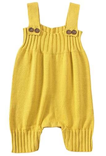 Plus Nao(プラスナオ) ベビー服 オーバーオール ニットソー つなぎ サロペット シンプル 無地 ベビー キッズ 男の子 女の子 M イエロー