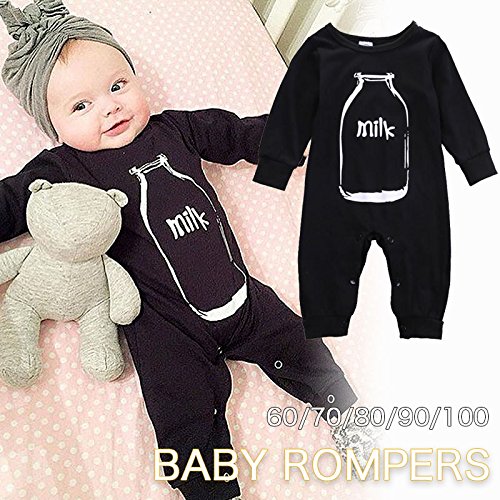 Plus Nao(プラスナオ) カバーオール ロンパース 長袖 ベビー キッズ ベビーウエア 新生児 プリント イラスト カジュアル シンプル 60 70 80 ブラック 60cm