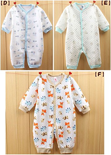 Plus Nao(プラスナオ) ベビー用 カバーオール ロンパース つなぎ 長袖 前開き スナップボタン 長ズボン キルティング パイピング 柄 可愛い 80 B