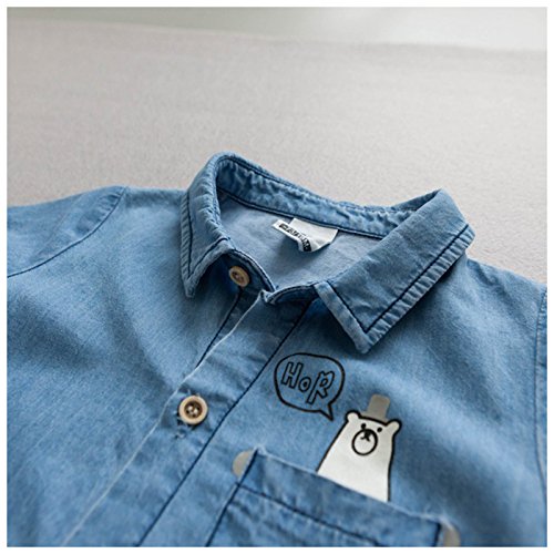 クマさんのバックプリントが可愛い・デニムシャツ風のカバーオールです♪(サイズについて)画像をご参照ください(素材について)コットン他