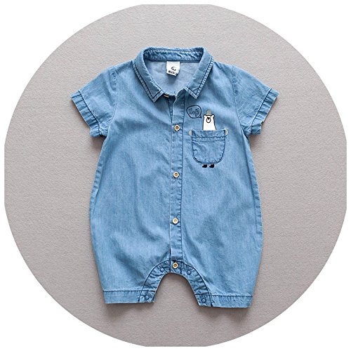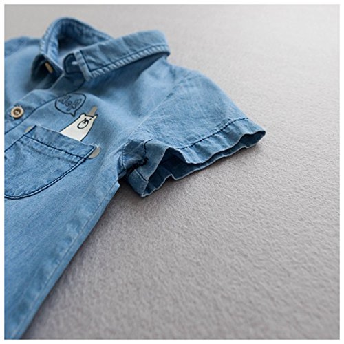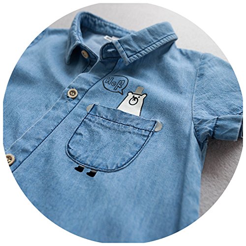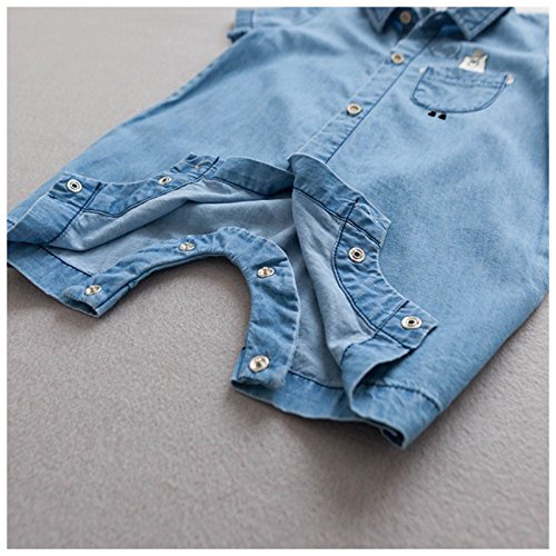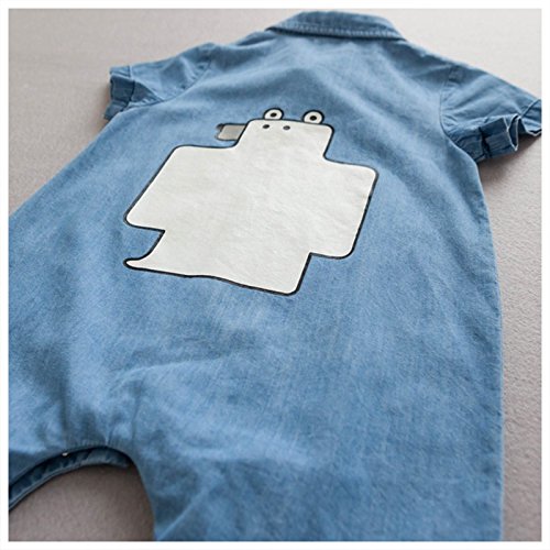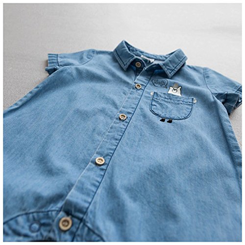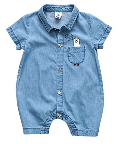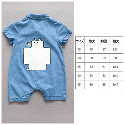 カバーオール ロンパース オールインワン つなぎ デニム ジーンズ 半袖 夏 子供服 ベビー服 ベビーウェア 男の子 男児 女の子 女児 バックプリント くまさん クマ デニムシャツ調 ボーイッシュ カジュアル 70cm 80cm 85cm 90cm 95cm