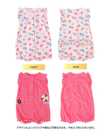 Plus Nao(プラスナオ) カバーオール ロンパース 半袖 前開き ボタン ベビー服 ボディスーツ ウイングスリーブ 春 夏 リボン 総柄 おしゃれ 9M 5931
