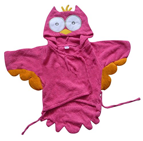 Plus Nao(プラスナオ) バスローブ タオル バスタオル キッズ ベビー 赤ちゃん 子供 男の子 女の子 男児 女児 新生児 贈り物 プレゼント 出 M フクロウ【レッド】