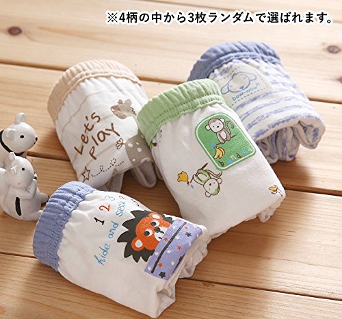 プリントが可愛い男の子用のインナー・ブリーフパンツ。 (サイズについて)60=75-85cm 65=85-95cm 70=95-105cm 75=105-115cm 80=115-130cm (素材について)綿混(カラーについて)4柄の中から3枚ランダムで選ばれます。ご了承下さい。