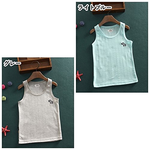 Plus Nao(プラスナオ) タンクトップ ノースリーブカットソー ランニング トップス 子供服 無地 シンプル ワンポイント刺繍 男児 女児 男の 100 ライトブルー