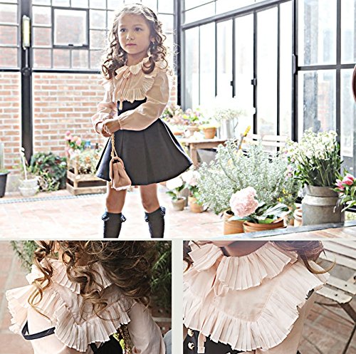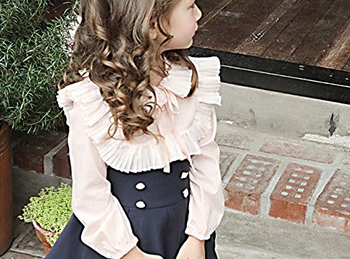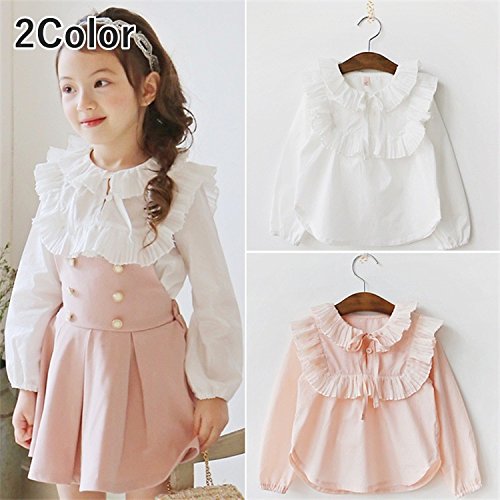 長袖ブラウス フリルブラウス プリーツブラウス プルオーバー トップス 子供服 女の子 女児 キッズ 小学生 春秋 リボン 無地 レトロ ガーリー 可愛い 華やか 100cm 110cm 120cm 130cm 140cm