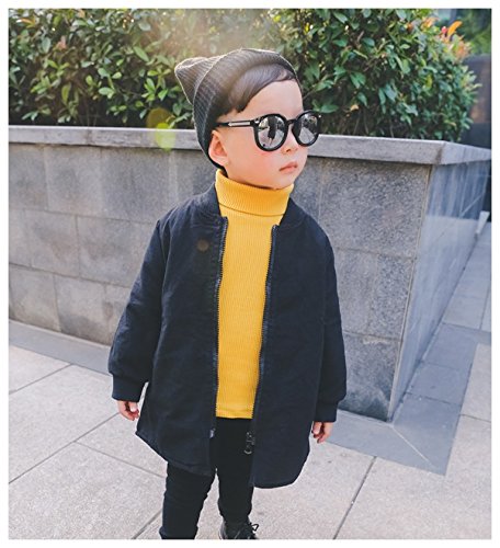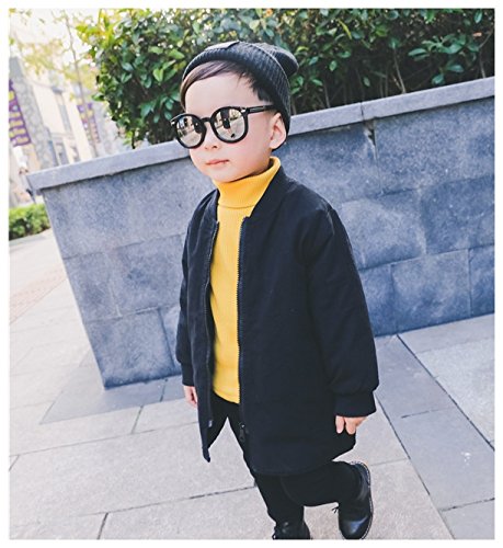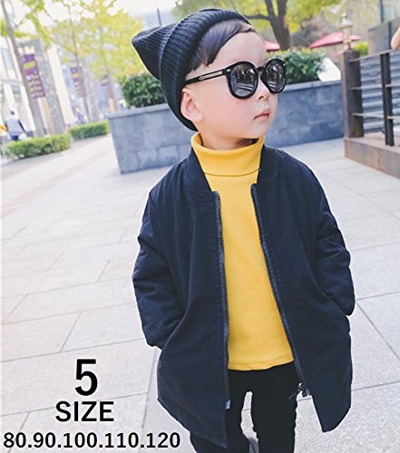 Plus Nao(プラスナオ) 子供用 ジャンパー ブルゾン ハーフコート ワッペン付き 長袖 ジップアップ 男の子用 女の子用 シンプル 無地 ベビー ブラック 80