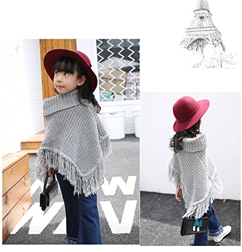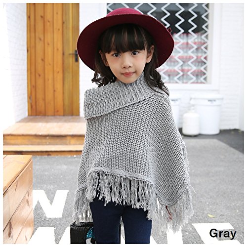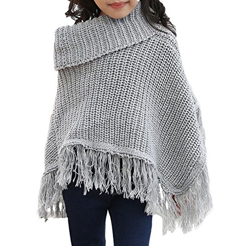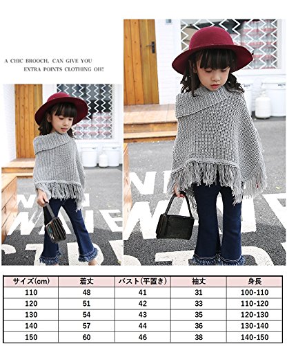 子供用 ポンチョ ニットポンチョ タートルネック フリンジ付き シンプル 無地 男の子 女の子 キッズ ジュニア 110 120 130 140 150