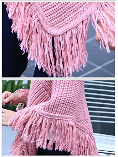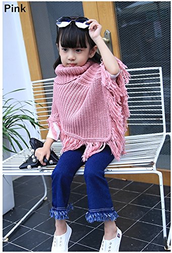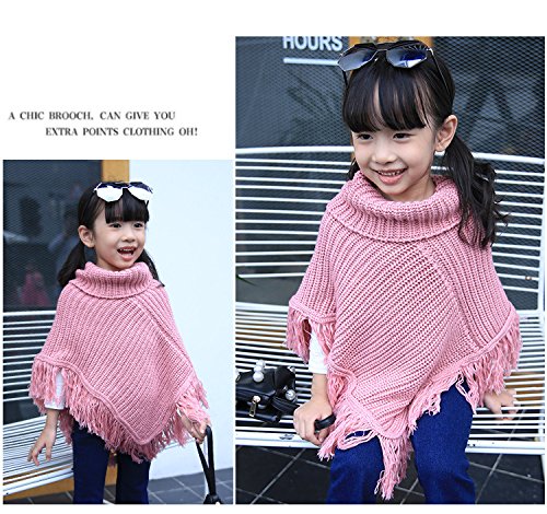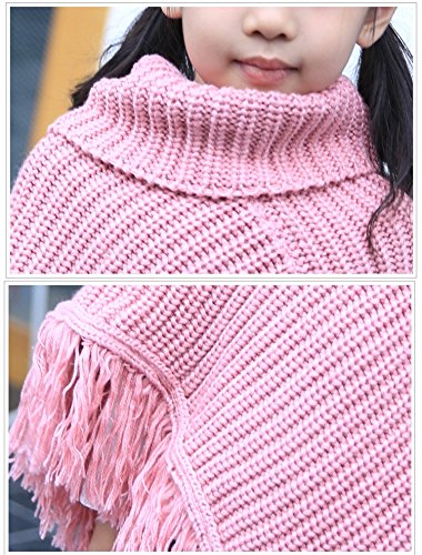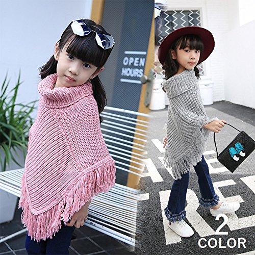 Plus Nao(プラスナオ) 子供用 ポンチョ ニットポンチョ タートルネック フリンジ付き シンプル 無地 男の子 女の子 キッズ ジュニア 110 12 ピンク 110