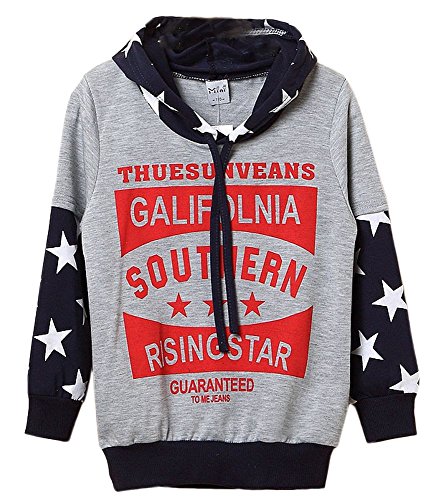 Plus Nao(プラスナオ) プルオーバーパーカー トレーナー 長袖 トップス 秋冬 子供服 男の子 女の子 男児 女児 キッズ スター柄 星柄 ロゴプ グレー 120
