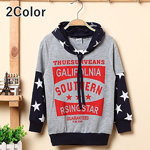 プルオーバーパーカー トレーナー 長袖 トップス 秋冬 子供服 男の子 女の子 男児 女児 キッズ スター柄 星柄 ロゴプリント 重ね着風 フェイクレイヤード 可愛い おしゃれ カジュアル 90m 100m 110m 120cm